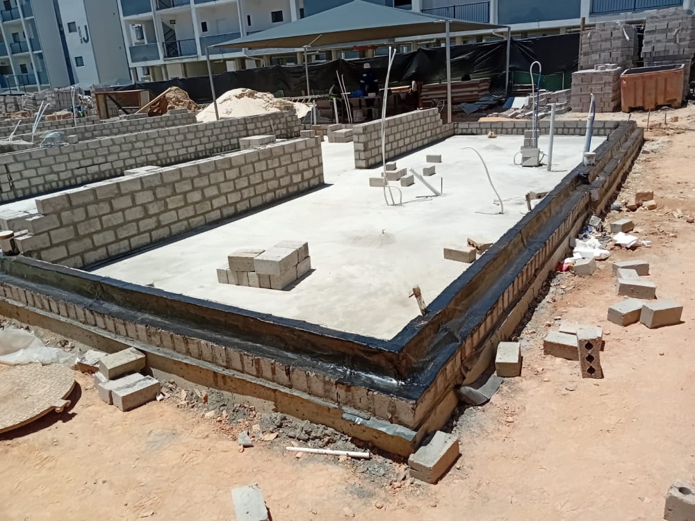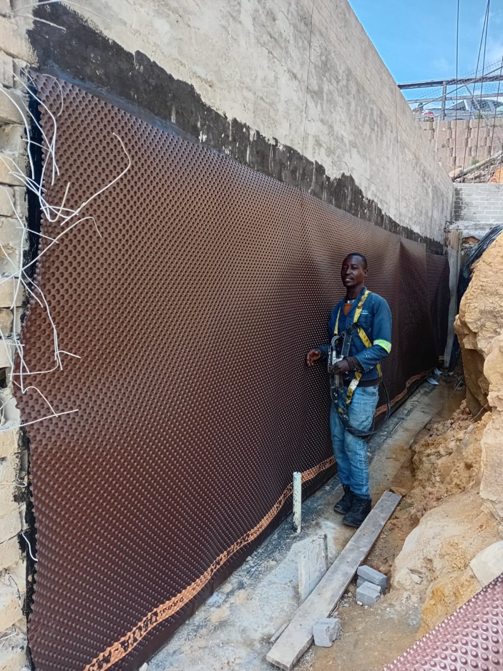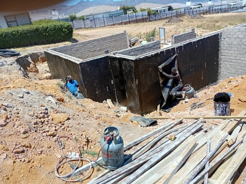 Foundation retaining walls water proofed